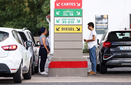 8月18日, 人們?cè)诜▏?guó)巴黎郊區(qū)的一處加油站加油。
