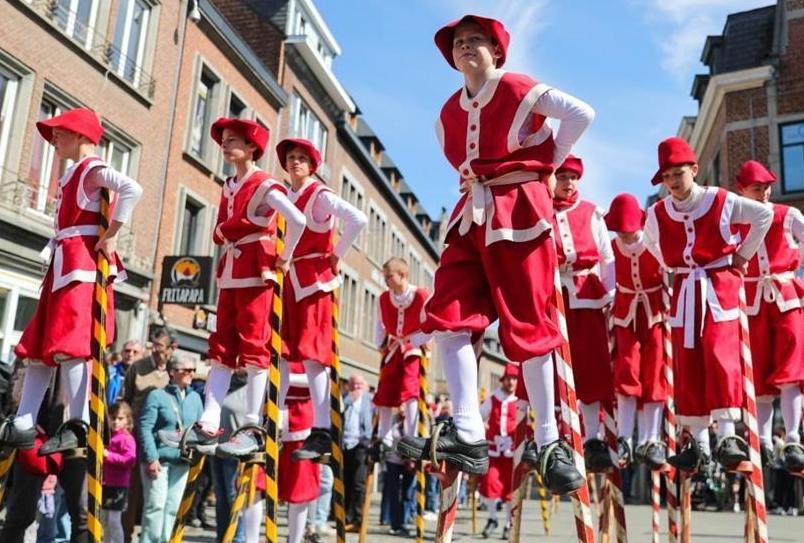 4月15日,演員在比利時(shí)那慕爾市傳統(tǒng)民俗日活動上表演。