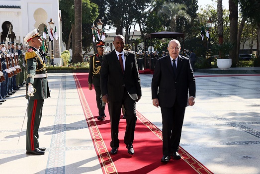 阿爾及利亞總統(tǒng)特本1月28日與到訪的蘇丹主權(quán)委員會(huì)主席兼武裝部隊(duì)總司令布爾漢在阿爾及利亞首都阿爾及爾舉行會(huì)談。在會(huì)談后舉行的聯(lián)合記者會(huì)上,布爾漢對(duì)阿爾及利亞調(diào)解蘇丹危機(jī)表示歡迎。