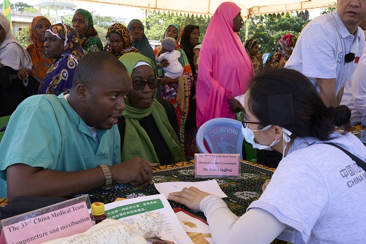 圖為第33期中國援桑給巴爾醫(yī)療隊(duì)隊(duì)員為當(dāng)?shù)孛癖娞峁┙】底稍兎?wù)。新華社發(fā)(第33期中國援桑給巴爾醫(yī)療隊(duì)供圖)