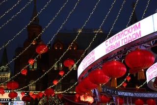 今年是莫斯科市連續(xù)第二年大規(guī)模舉辦春節(jié)慶?;顒?。與去年相比,今年的活動規(guī)模更大。相關(guān)活動還在特維爾廣場、全俄展覽中心、莫斯科動物園、夢幻島游樂園、“藥劑師花園”等地舉辦。人氣頗高的休閑街區(qū)新阿爾巴特街、扎里亞季公園、中央百貨商店等均換上春節(jié)“新裝”,奧斯坦金諾電視塔、“莫斯科太陽”摩天輪等全俄地標則亮起喜慶的“中國紅”。