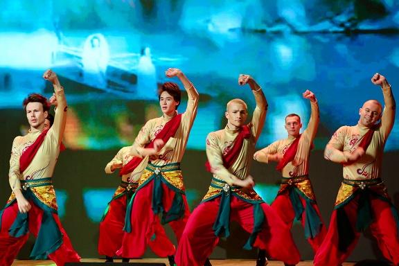 莫斯科阿拉·托杰斯舞蹈團演員表演舞蹈。