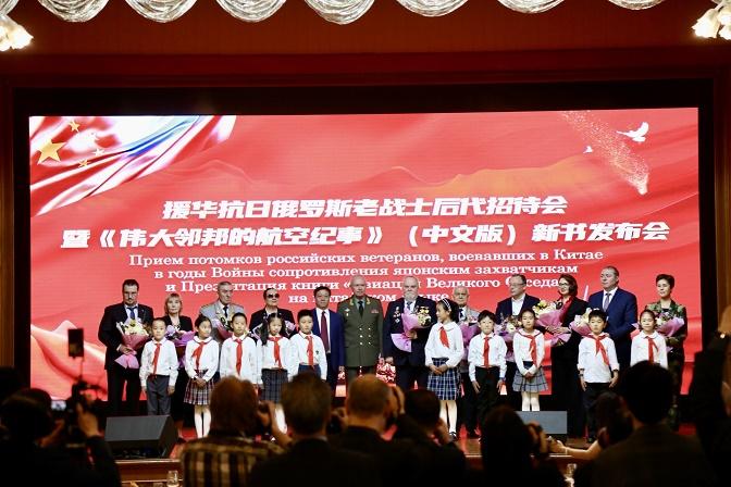 招待會上舉辦了《偉大鄰邦的航空紀(jì)事》圖書中文版發(fā)布會,該書展現(xiàn)了中蘇人民在中國人民抗日戰(zhàn)爭中結(jié)下的戰(zhàn)斗友誼和蘇聯(lián)對新中國航空業(yè)發(fā)展的重要支持。來賓們觀看了新華社歐亞總分社和中國圖片社主辦的“百煉成鋼的真心朋友”主題圖片展及亞歷山德羅夫紅旗歌舞團(tuán)、俄羅斯中國總商會帶來的精彩演出。使館少年兒童代表向俄老戰(zhàn)士后代獻(xiàn)花表達(dá)敬意。
