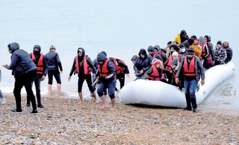 圖為一艘偷渡船抵達英國鄧杰內(nèi)斯角海岸。新華社發(fā)