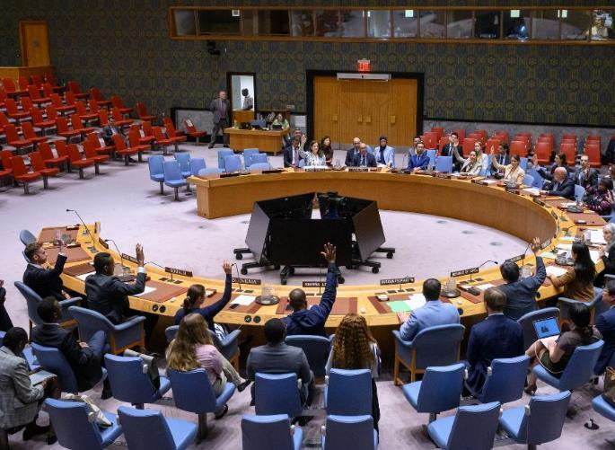 這是7月15日在位于紐約的聯(lián)合國總部拍攝的安理會投票表決現場。新華社發(fā)(聯(lián)合國供圖/洛伊·費利佩攝)