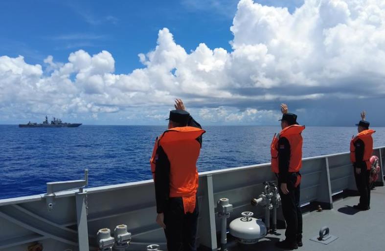 聯(lián)合巡航期間,中俄雙方密切協(xié)同、默契配合,以輪流指揮或共同指揮方式,完成聯(lián)合搜救、聯(lián)合補(bǔ)給、聯(lián)合護(hù)航、聯(lián)合防空等課目演練。