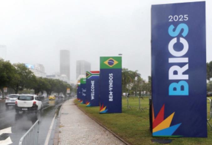 圖為7月3日在巴西里約熱內(nèi)盧拍攝的金磚國家領(lǐng)導(dǎo)人第十七次會(huì)晤歡迎標(biāo)語牌。 新華社發(fā)