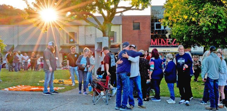圖為當(dāng)?shù)貢r(shí)間10月12日,美國田納西州韋弗利,民眾聚集在漢弗萊斯縣法院,為炸藥廠爆炸事件的遇難者舉行燭光守夜活動(dòng)。 CFP供圖