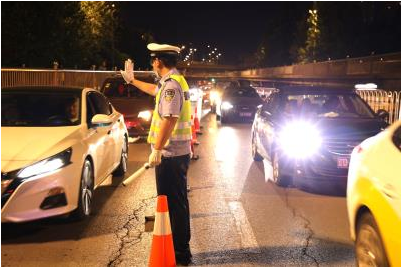 圖為7月12日晚,和平交警大隊(duì)民警在南京街北一路執(zhí)勤檢查。