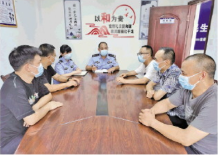 圖為余忠明夫婦正在組織調(diào)解。熊波 攝