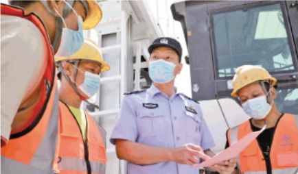圖為劉志軍在施工現(xiàn)場向工人講解鐵路安全常識。
