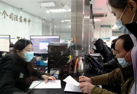 圖為1月28日,江蘇省南通經(jīng)濟技術(shù)開發(fā)區(qū)人民法院干警以“滿格電”的狀態(tài)投入到緊張繁忙的工作之中。圖為工作人員在訴訟服務(wù)中心為當(dāng)事人辦理立案手續(xù)。