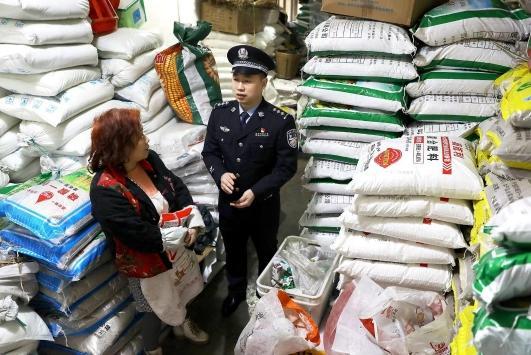 圖為春耕春播時(shí)節(jié),貴州省赤水市公安局組織民警開展“綠劍護(hù)農(nóng)”行動(dòng),對(duì)市場(chǎng)銷售的種子、化肥、農(nóng)藥等農(nóng)資產(chǎn)品進(jìn)行拉網(wǎng)式檢查,打擊坑農(nóng)害農(nóng)違法行為,為春耕生產(chǎn)保駕護(hù)航。法治日?qǐng)?bào)全媒體通訊員 王長(zhǎng)育 攝