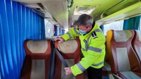 3月10日,天津市公安交通管理局和平支隊民警深入轄區(qū)企業(yè),對客運車輛安全帶設(shè)施進行檢查。 焦軒 攝