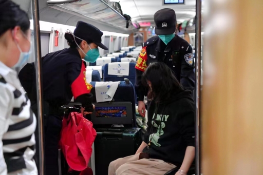 圖為5月8日,廣州鐵路公安局懷化公安處乘警在列車上幫助困難殘疾旅客。