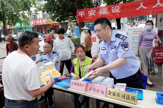 5月30日,安徽省馬鞍山市花山區(qū)金家莊街道組織開展以“平安建設(shè) 人人參與”為主題的廣場宣傳活動(dòng)。圖為金家莊司法所工作人員正在接受群眾咨詢。法治日?qǐng)?bào)全媒體通訊員 胡智慧 汪華 攝