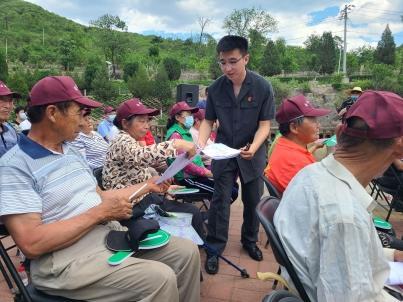 6月9日,在“普法驛站進山區(qū) 法潤?quán)l(xiāng)村促振興”宣傳活動中,工作人員向山區(qū)群眾發(fā)放普法需求調(diào)查問卷。