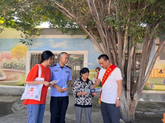 8月4日,新疆生產(chǎn)建設兵團第二師鐵門關市司法局開展入戶普法活動,向群眾宣講民法典、法律援助法等法律知識,解答群眾常見的法律問題。圖為律師正在向群眾普法。 邢雅男 攝