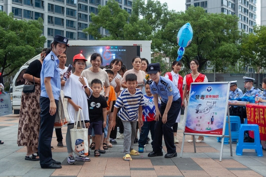 9月23日,浙江省臺州市公安局黃巖分局民警在吾悅廣場舉辦宣傳活動,通過播放視頻、發(fā)放資料等形式,宣傳交通安全、防范詐騙等知識。法治日報全媒體通訊員 喻躍翔 攝