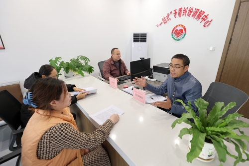 11月22日,江蘇省鎮(zhèn)江市潤州區(qū)司法局七里甸司法所工作人員正在調(diào)解一起鄰里糾紛。法治日報全媒體通訊員 石玉成 攝