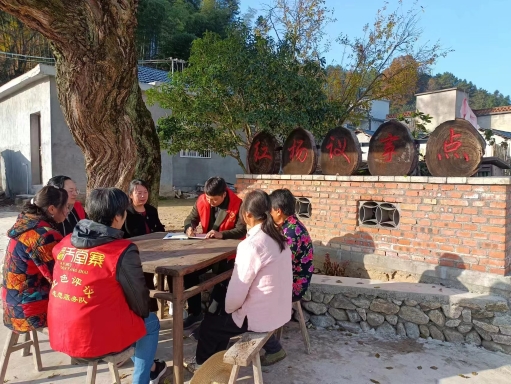 11月23日,在安徽省岳西縣馬石村“紅楊議事點”,村干部和調(diào)解員回訪糾紛當(dāng)事人。 王霞 攝