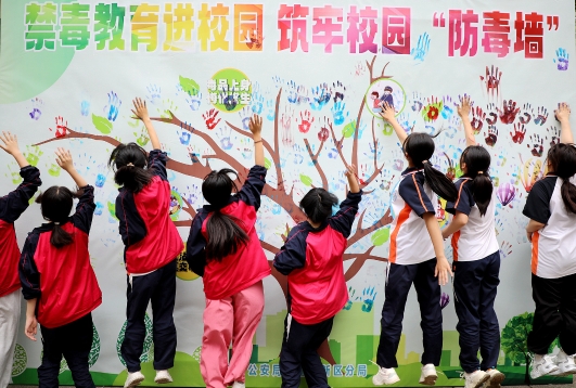 6月4日,江西省九江市公安局八里湖新區(qū)分局聯(lián)合轄區(qū)學(xué)校開展禁毒宣傳教育活動(dòng)。法治日?qǐng)?bào)全媒體通訊員 游建棟 攝