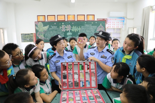 6月4日,貴州省赤水市公安局組織民警走進轄區(qū)學(xué)校,通過講解禁毒知識等,引導(dǎo)學(xué)生珍愛生命、遠離毒品。法治日報全媒體通訊員 王長育 攝