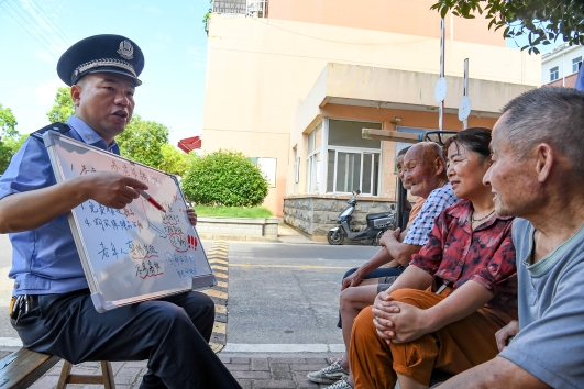 近日,安徽省含山縣公安局花山派出所組織民警進社區(qū),為老年人普及防范電信網(wǎng)絡(luò)詐騙知識。法治日報全媒體通訊員 馮善軍 攝