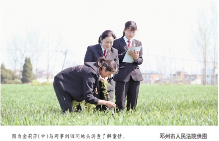 正是秉持著這樣的信念,金莉莎奔波在田間地頭,依法用心用情守護(hù)著公平正義。她吃苦耐勞、善于鉆研,多次被鄧州市法院評(píng)為“優(yōu)秀法官”“辦案能手”,2024年2月被河南省高級(jí)人民法院授予“李慶軍式十佳法官”榮譽(yù)稱號(hào)。