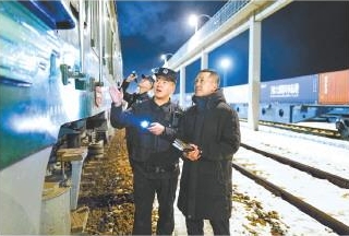 當(dāng)吳浩趕到執(zhí)勤點時,當(dāng)班執(zhí)勤的檢查員民警王帥和王永發(fā)已身著輕便的執(zhí)勤服、攜帶執(zhí)勤裝備,整齊地站在中歐班列一側(cè),準(zhǔn)備執(zhí)行檢查任務(wù)。