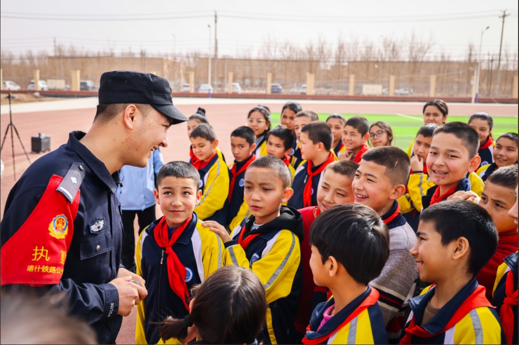 為確保鐵路運輸安全,近日,烏魯木齊鐵路公安局喀什公安處民警深入轄區(qū)中小學校,開展以“大手牽小手 共筑平安線”為主題的系列普法宣傳活動,著力提升在校師生的安全防范意識。