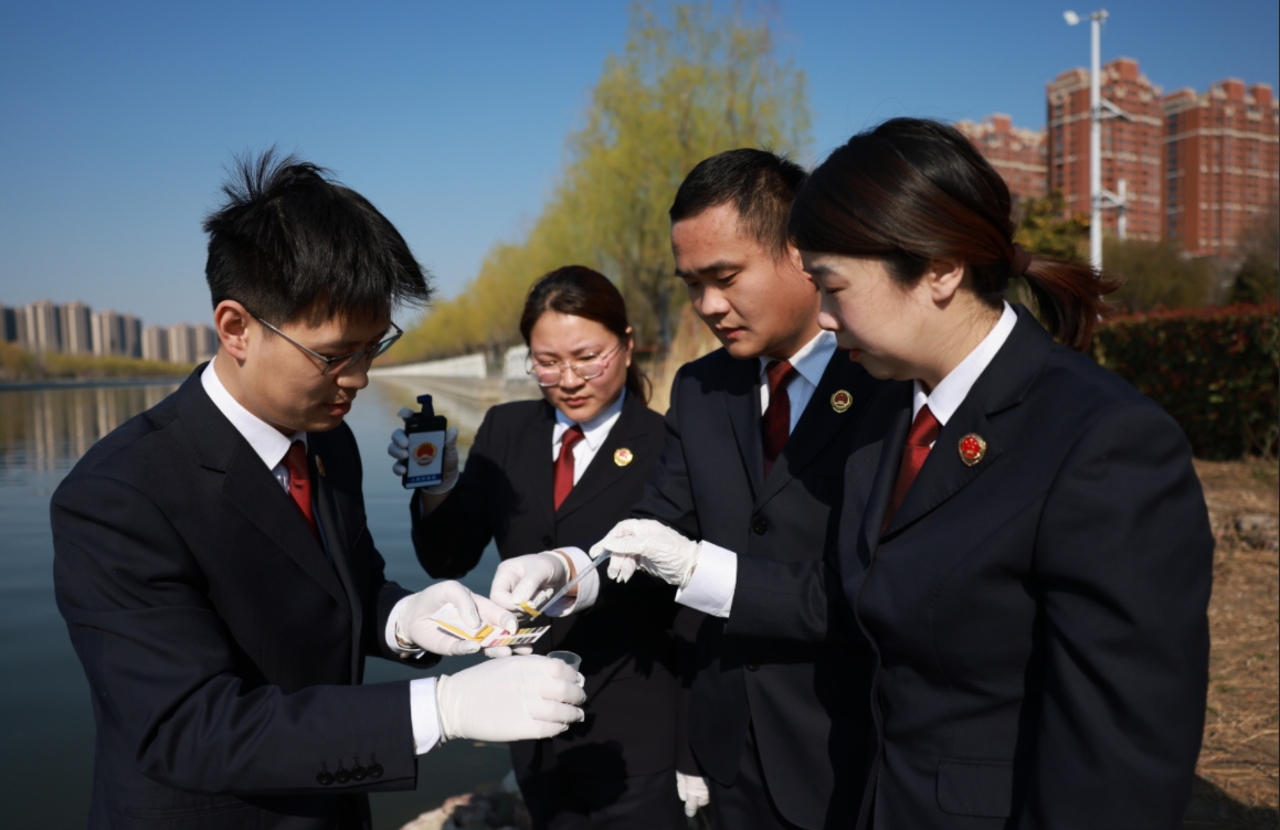近日,河南自由貿(mào)易試驗區(qū)鄭州片區(qū)人民檢察院公益訴訟辦案組分別到流經(jīng)轄區(qū)的賈魯河、熊兒河和東風(fēng)渠段開展抽檢水樣行動,將抽取到的水樣檢測結(jié)果及時發(fā)給河道執(zhí)法單位,依法守護轄區(qū)河流更清更美。