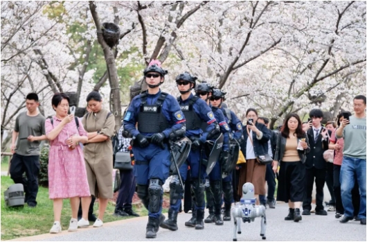 3月22日,江蘇省無錫市黿頭渚景區(qū)內,櫻花競相綻放。櫻花樹下,游人如織,歡聲笑語不斷。長春橋邊、櫻花谷入口、賞櫻閣下……執(zhí)勤警力在默默守護。每年春天,八方游客來錫,共赴櫻花之約。平均每日數(shù)萬名游客涌入5.39平方公里的景區(qū),如何守護景區(qū)和游客的安全,守住游客對無錫的美好印象,成為無錫警方的“必答題”。