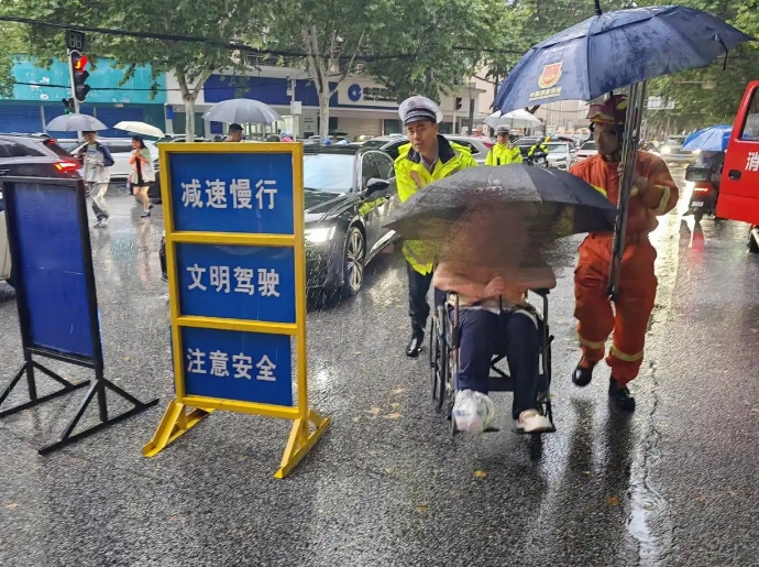 幫考生拉開車門,為忘帶雨具的考生撐傘,固定考生被風(fēng)吹翻的雨衣……暴雨中,劉明智和戰(zhàn)友們?nèi)珕T上陣,織密應(yīng)急服務(wù)網(wǎng)絡(luò),考點周圍涌動著緊張而溫暖的“護考潮”。