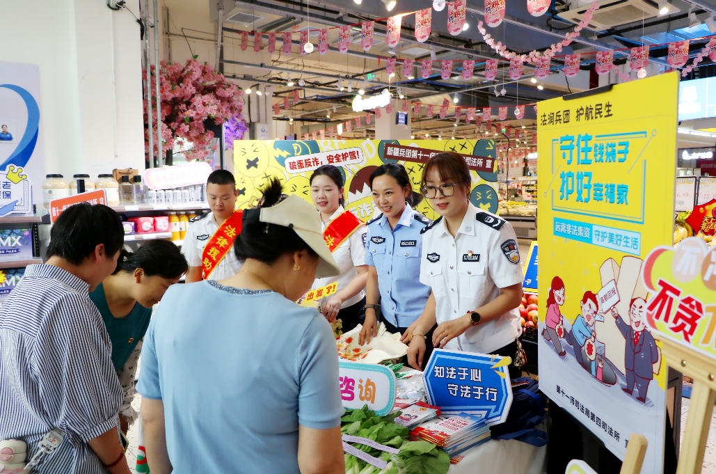 7月11日,新疆生產(chǎn)建設(shè)兵團(tuán)第十一師司法局第四司法所聯(lián)合烏魯木齊市經(jīng)開區(qū)(頭屯河區(qū))司法局高鐵司法所,在綠嶺社區(qū)某超市開展“反詐菜場(chǎng)”普法宣傳活動(dòng),把防騙知識(shí)融進(jìn)日常生活場(chǎng)景,用居民聽得懂、記得住的方式普及反詐技巧,讓居民每次買菜都能學(xué)上幾句防騙口訣,在買菜、聊天的間隙學(xué)習(xí)防騙知識(shí)。