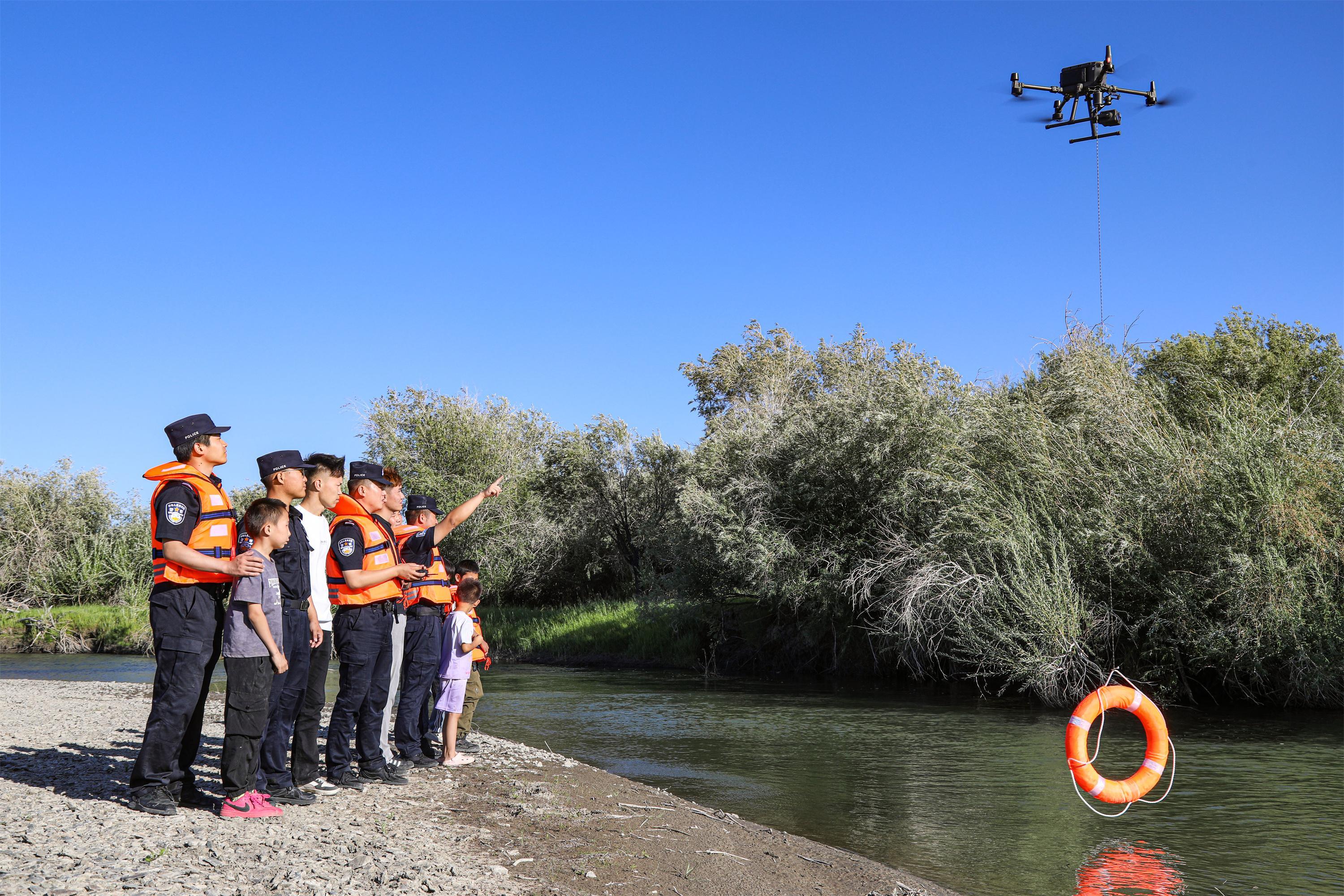 為切實(shí)保障人民群眾生命安全,提升群眾安全意識(shí),嚴(yán)防溺水事故的發(fā)生,7月22日,新疆出入境邊防檢查總站阿勒泰邊境管理支隊(duì)塔克什肯口岸邊境派出所創(chuàng)新實(shí)踐“科技+警務(wù)”模式,全面加強(qiáng)重點(diǎn)水域巡邏管控、防溺水宣傳工作。同時(shí),民警利用無(wú)人機(jī)常態(tài)化在河流、池塘等溺水事故易發(fā)地開展巡防工作,全面筑牢夏季安全防線,用科技力量為夏季水域安全保駕護(hù)航。
