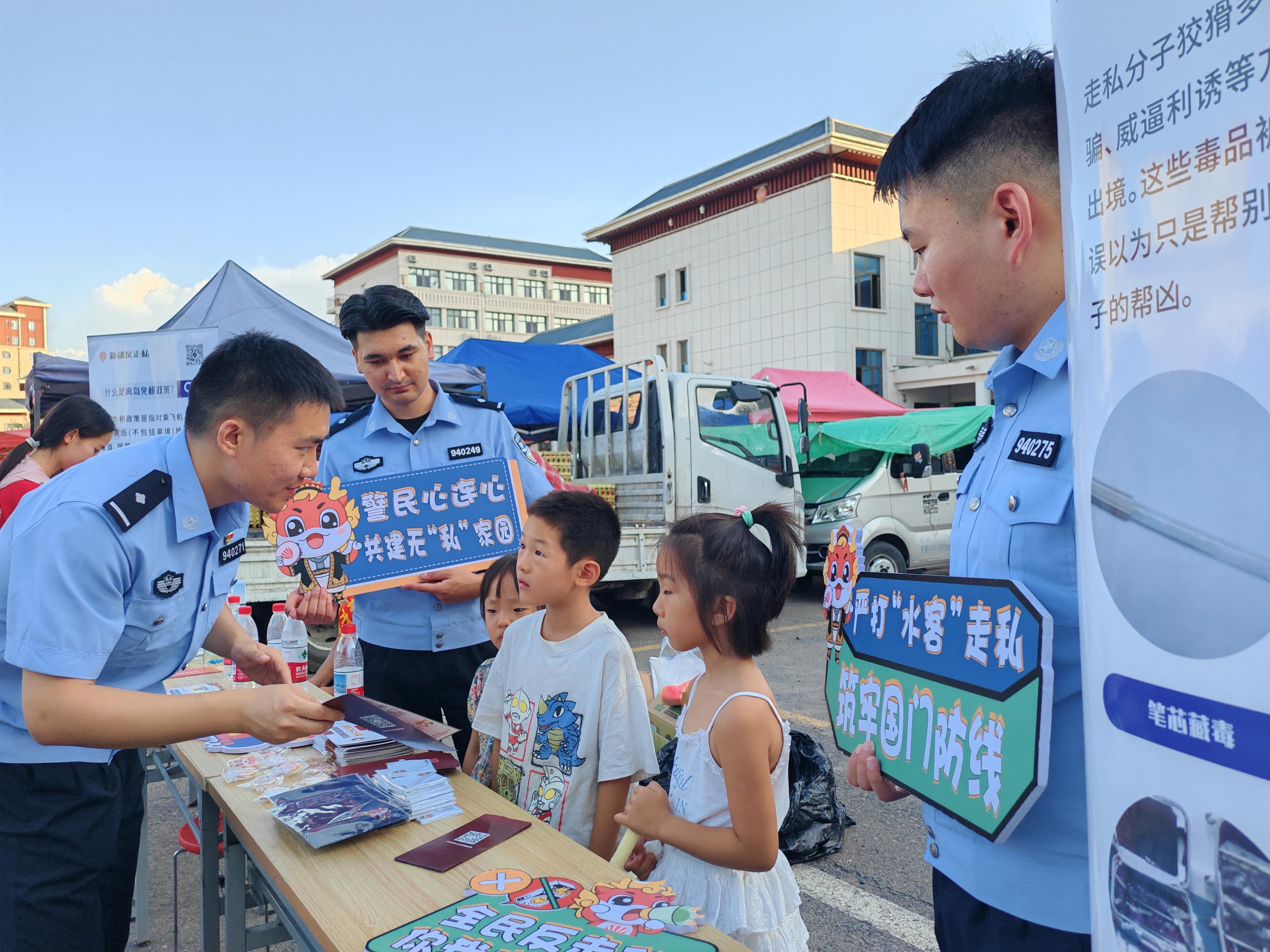 圖為7月24日,烏魯木齊海關(guān)緝私局所屬霍爾果斯海關(guān)緝私分局民警走進轄區(qū)集市開展普法宣傳活動。