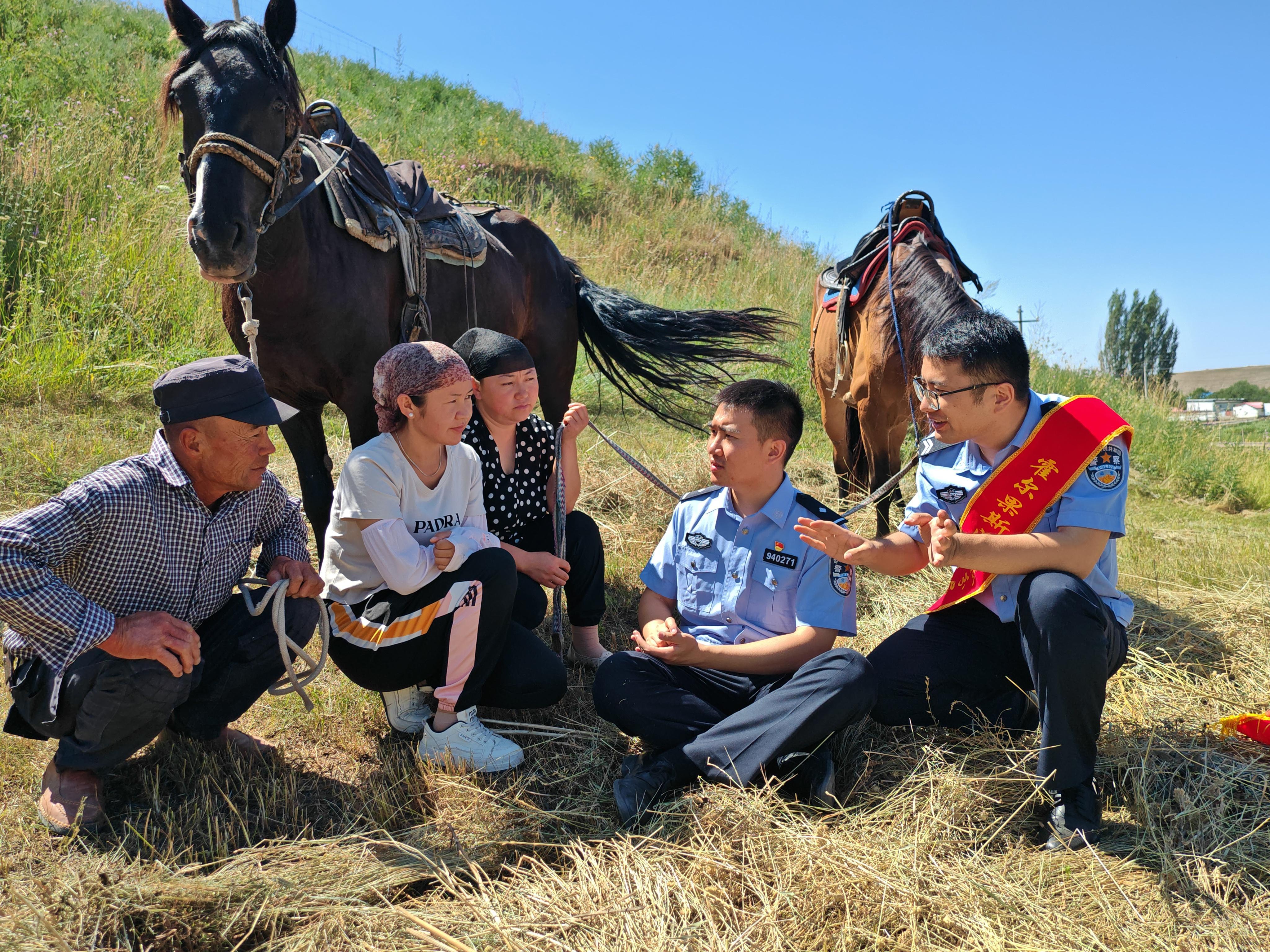 圖為7月24日,烏魯木齊海關(guān)緝私局所屬霍爾果斯海關(guān)緝私分局民警走進牧區(qū)向群眾講解反走私相關(guān)法律知識。