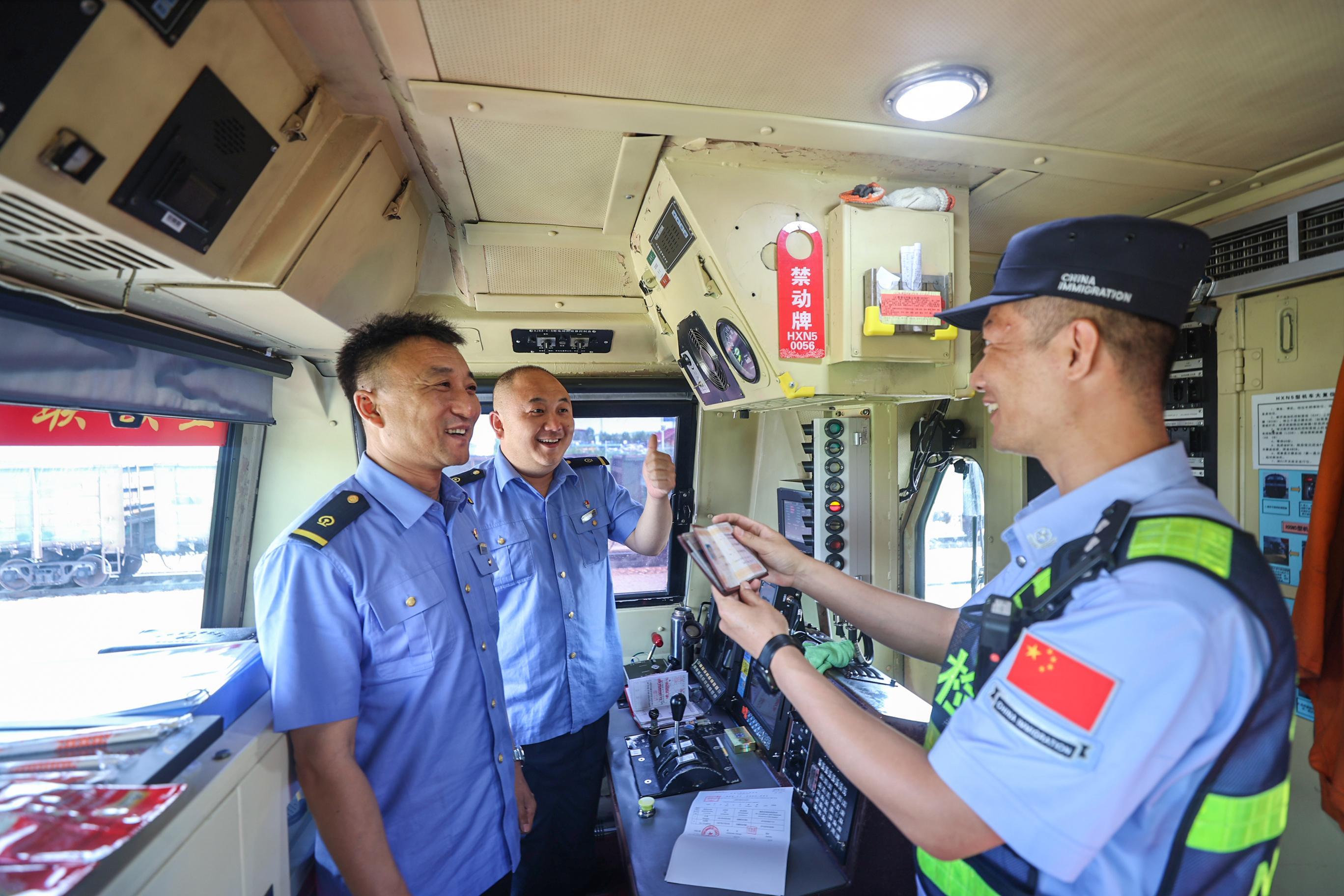 圖為滿洲里邊檢站移民管理警察高效護(hù)航中歐班列獲點贊。