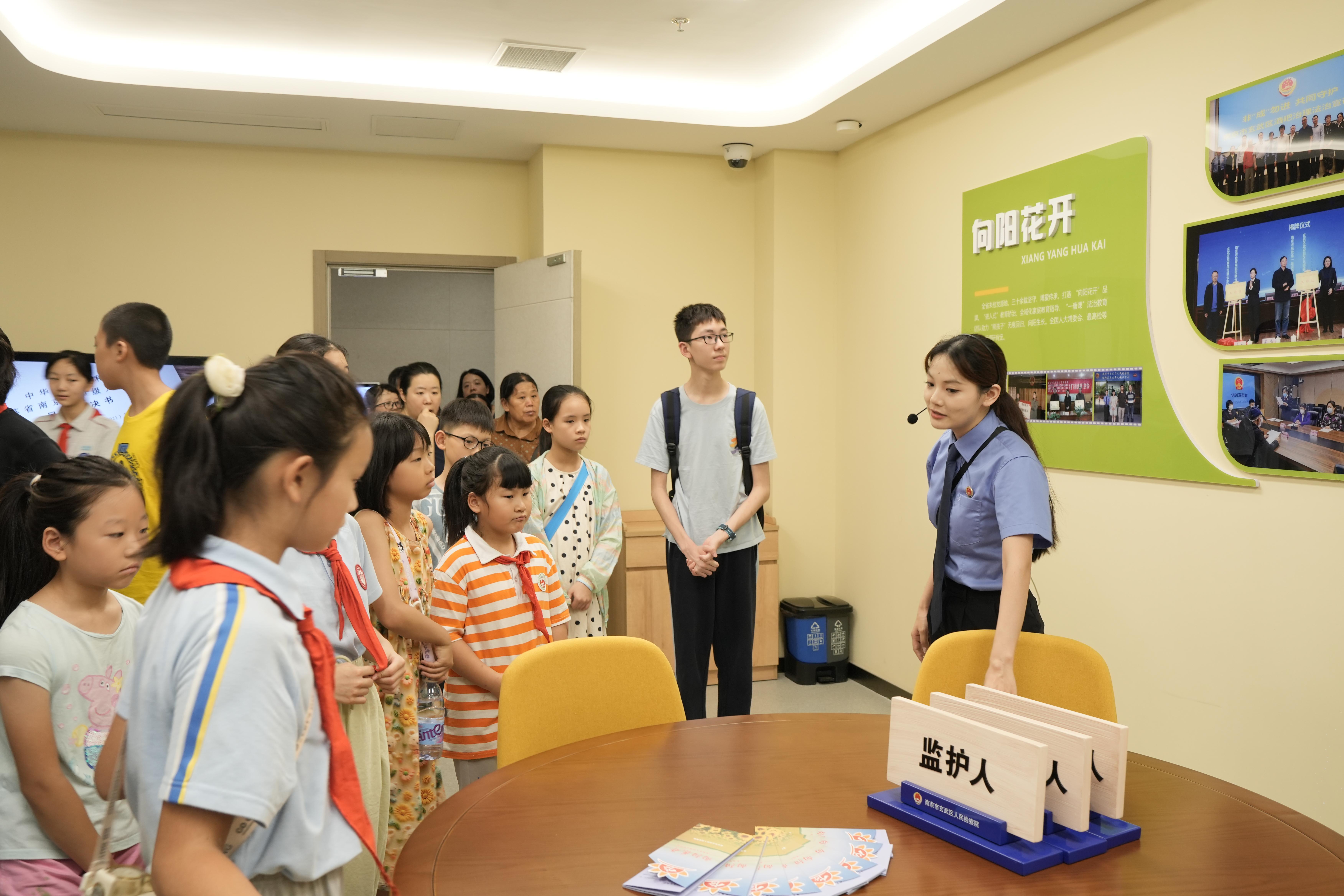 8月8日下午,來自江蘇省南京市玄武區(qū)3個(gè)社區(qū)的20余名小朋友在家長(zhǎng)與社區(qū)志愿者的陪伴下,來到了南京市玄武區(qū)人民檢察院,開啟了一場(chǎng)別開生面的沉浸式法治教育之旅。