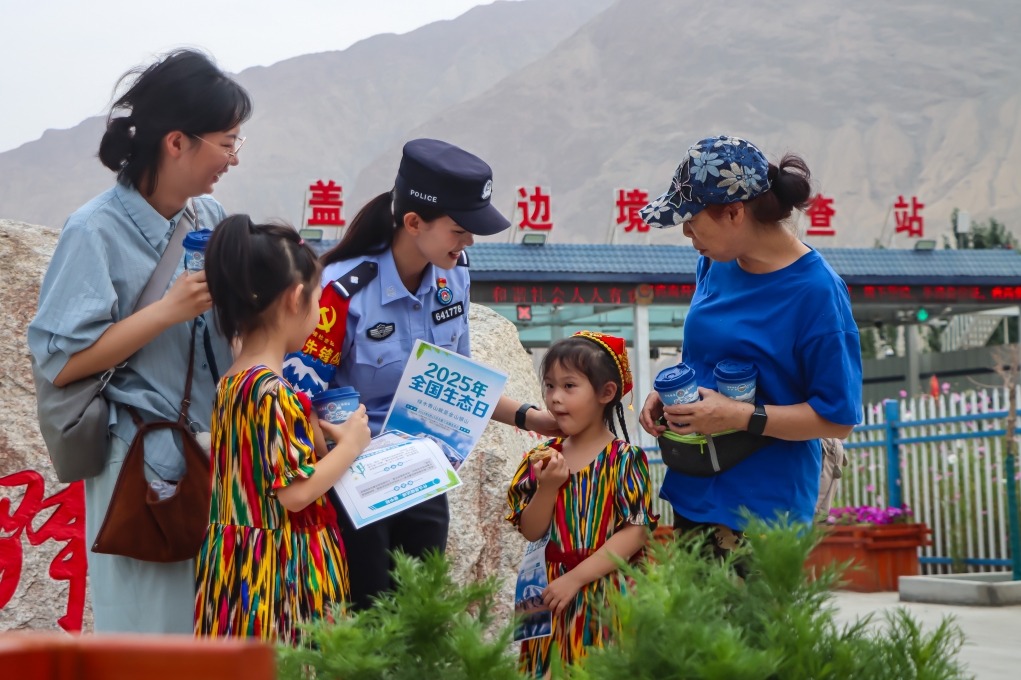 8月13日,新疆出入境邊防檢查總站克州邊境管理支隊(duì)蓋孜邊境檢查站依托“NIA警茶車(chē)”服務(wù)點(diǎn),開(kāi)展全國(guó)生態(tài)日主題宣傳活動(dòng)。民警通過(guò)發(fā)放宣傳手冊(cè)、現(xiàn)場(chǎng)講解、案例展示等形式,向游客普及環(huán)境保護(hù)、野生動(dòng)物保護(hù)等相關(guān)法律法規(guī),并結(jié)合高原生態(tài)特點(diǎn),重點(diǎn)宣傳垃圾處理、水源污染防治及野生動(dòng)植物保護(hù)知識(shí),倡導(dǎo)綠色低碳出行,共同守護(hù)邊境生態(tài)安全。