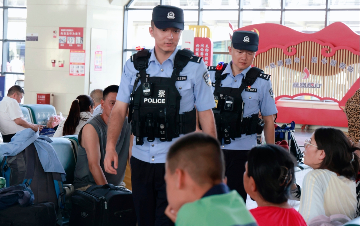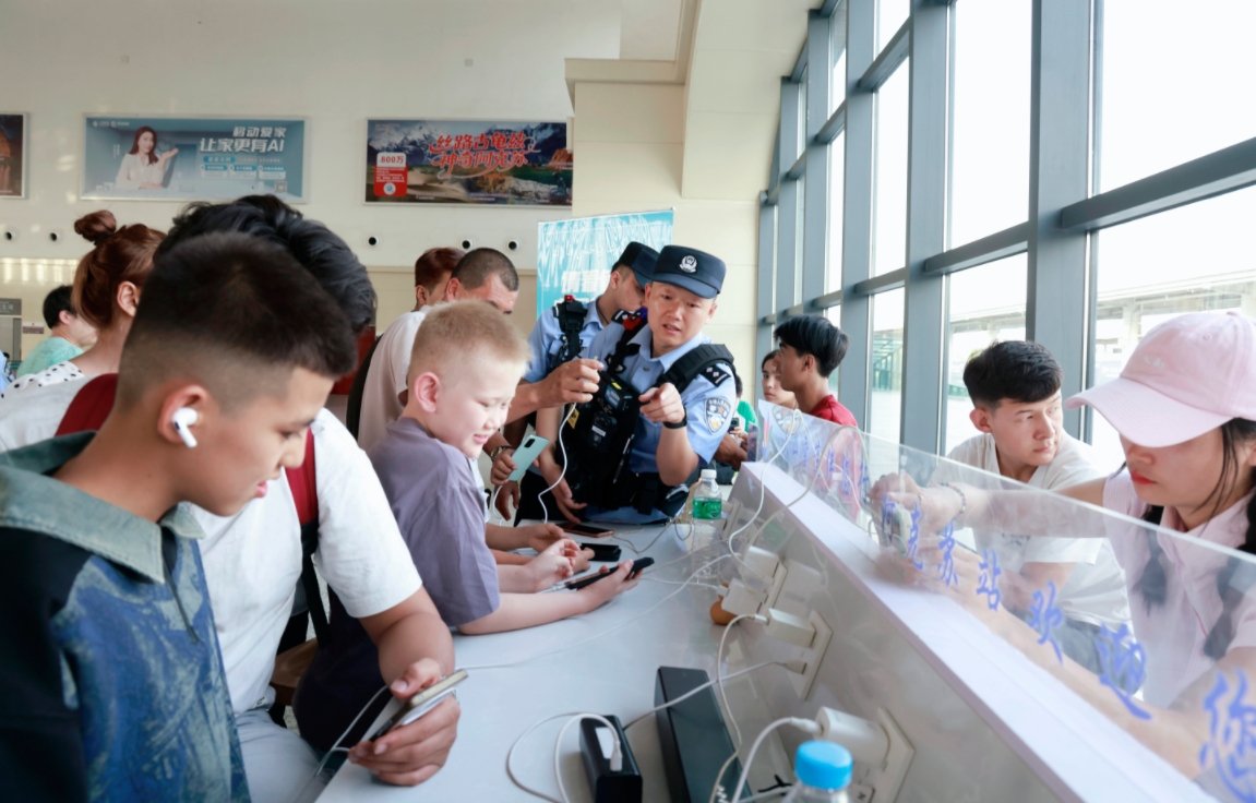 “出現(xiàn)警情后,指揮室會第一時間通知相關警力到現(xiàn)場處置?!彼L王彥帥表示,在車站秩序維護上,派出所針對暑運客流高峰特征,科學調配警力資源,加密售票廳、候車室等重點區(qū)域的巡邏頻次與管控力度,及時疏導擁堵人群,引導旅客有序購票、安檢、候車。此外,民警主動延伸服務觸角,為旅客提供問詢指引、失物查找等便民服務。