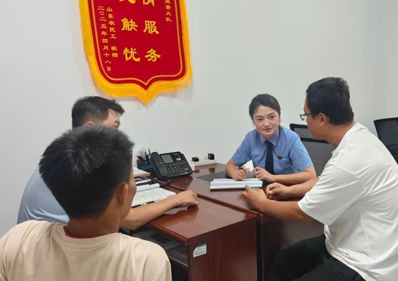 圖為托克遜縣人民檢察院駐綜治中心干警化解一起欠薪糾紛。