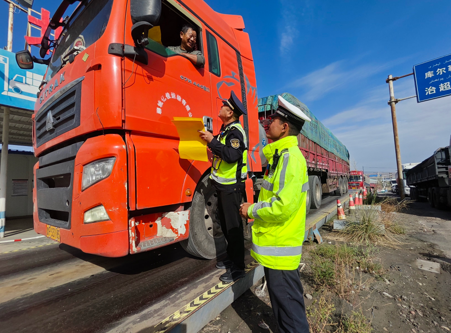 國慶、中秋雙節(jié)將至,為全力營造更加安全、有序、和諧、暢通的交通環(huán)境,9月27日,新疆庫爾勒市公安局交通管理大隊塔什店中隊與巴音郭楞執(zhí)法支隊博湖執(zhí)法大隊,持續(xù)聚焦轄區(qū)G216線高頻次行駛的重點大型貨運車輛、混凝土攪拌運輸車等車輛超速、超員、超載和駕駛?cè)似隈{駛,強化路警聯(lián)勤聯(lián)動機制,通過“定點檢查+流動巡查+精準宣傳”相結(jié)合的方式,強化信息共享、執(zhí)法協(xié)作,為雙節(jié)期間防事故、保安全、保暢通工作打下堅實基礎(chǔ)。