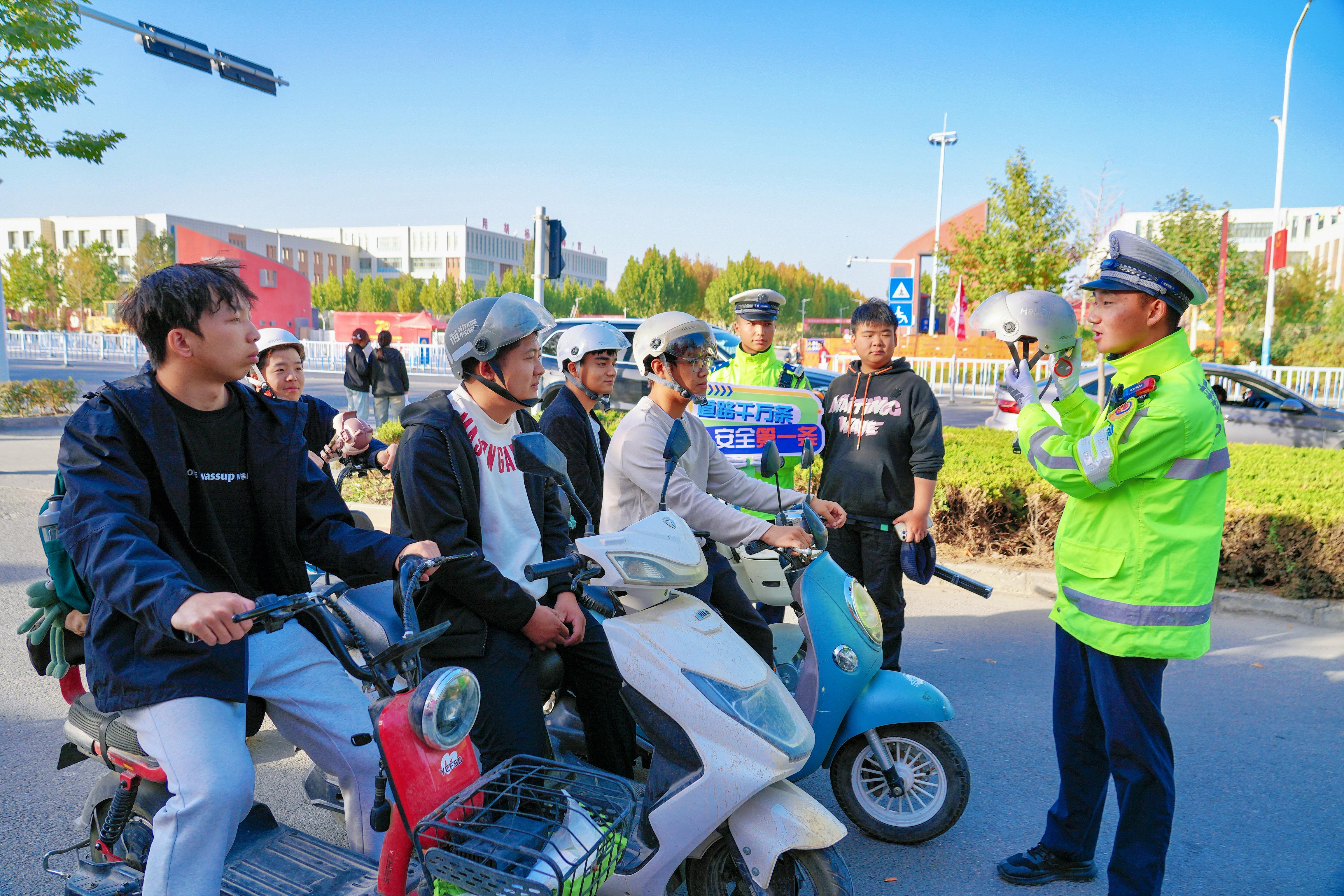 圖為10月16日,溫宿縣公安局交通管理大隊民警向新疆理工學(xué)院學(xué)生普及文明騎車相關(guān)知識,引導(dǎo)學(xué)生切勿逆向行駛。