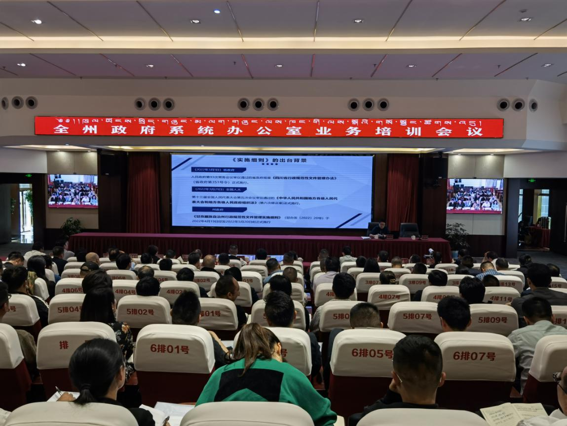 四川省甘孜州高度重視行政規(guī)范性文件管理工作。日前,該州州政府召開全州政府系統(tǒng)辦公室工作暨業(yè)務(wù)培訓(xùn)視頻會(huì)議,邀請(qǐng)?jiān)撝菟痉ň中姓⒎ê蛡浒笇彶榭曝?fù)責(zé)人,開展行政規(guī)范性文件管理工作專題培訓(xùn)。州政府秘書長(zhǎng)、副秘書長(zhǎng),辦公室主任、副主任,各縣市政府和州政府各部門分管領(lǐng)導(dǎo)等300余人分別在主會(huì)場(chǎng)和分會(huì)場(chǎng)參加培訓(xùn)。