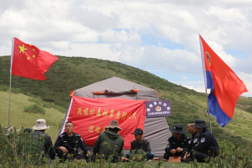 派出所是公安機關最基本的戰(zhàn)斗單元,而牧場的移動警務室就是“藏區(qū)群眾家門口的派出所”,在維護穩(wěn)定、打擊犯罪、服務群眾等方面發(fā)揮著重要作用。此時正值牧民按季轉場時期,也是矛盾凸顯的高峰時期,為有效避免“三山一界”糾紛、遏止越界放牧、群體性事件和安全事故的發(fā)生,從而進一步構建和諧警民關系,全力維護轄區(qū)社會治安持續(xù)穩(wěn)定,四川省甘孜州壤塘縣公安局主動出擊,以 “百日行動”為抓手,積極探索主動警務、預防警務的新方法、新途徑,以一頂帳篷、五輛摩托車、兩名派出所民警深入轄區(qū)夏季牧場設立了“牧場移動警務室”,打通了派出所便民為民利民的最后一公里,溫暖了轄區(qū)數千牧民群眾的心。