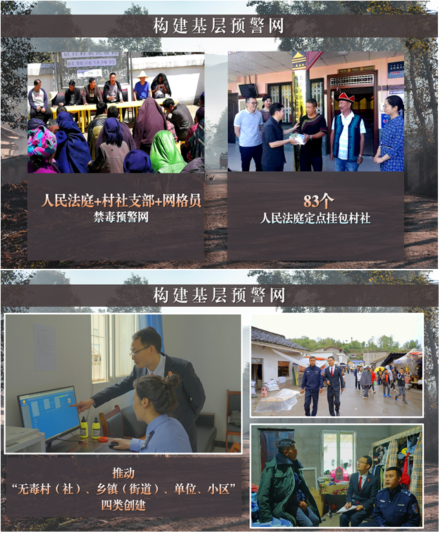 借鑒“楓橋經(jīng)驗”,構(gòu)建“人民法庭+村社支部+網(wǎng)格員”禁毒預警模式,全州83個人民法庭定點掛包村社、包干到人,定期走村入戶教導群眾防毒,培訓督導網(wǎng)格員落實毛發(fā)、污水檢測,從源頭上預防和減少涉毒違法犯罪,推動“無毒村(社)、鄉(xiāng)鎮(zhèn)(街道)、單位、小區(qū)”四類創(chuàng)建。