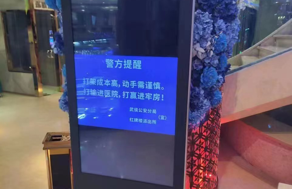 截至目前,紅牌樓派出所的此輪宣防工作已經(jīng)覆蓋了轄區(qū)內(nèi)237家娛樂場(chǎng)所,甚至所有KTV的開機(jī)畫面都已經(jīng)換成了“嚴(yán)禁打架斗毆”等相關(guān)內(nèi)容,提醒消費(fèi)者文明飲酒、理性止紛,提升市民群眾的守法自覺和防護(hù)意識(shí),為平安蓉城加碼助力。