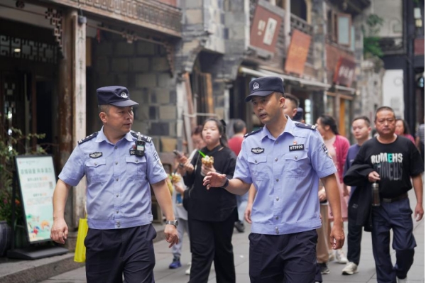 “小吃街游客堵起了......”10月1日當(dāng)天下午4點(diǎn)過(guò),熊建接到分局情指中心指令,第一時(shí)間帶領(lǐng)輔警趕到現(xiàn)場(chǎng)開(kāi)展人流疏導(dǎo),幾分鐘后正在附近巡邏的另兩組警力也趕了過(guò)來(lái),和熊建等人一起很快疏通了人流,恢復(fù)了現(xiàn)場(chǎng)秩序。像這樣的突發(fā)情況,在國(guó)慶長(zhǎng)假的錦里景區(qū)內(nèi)每天都會(huì)上演很多次,而依托5G執(zhí)法記錄儀和“3M可視化”應(yīng)用系統(tǒng),巡邏執(zhí)勤警力總能第一時(shí)間趕到現(xiàn)場(chǎng)協(xié)力開(kāi)展工作,高效妥善處置、維護(hù)景區(qū)秩序。